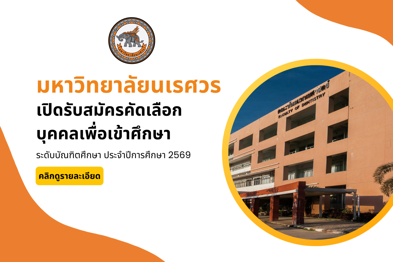 มหาวิทยาลัยนเรศวร เปิดรับสมัครคัดเลือกบุคคลเพื่อเข้าศึกษา ระดับบัณฑิตศึกษา ประจำปีการศึกษา 2569